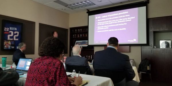 Wes Brinkman, April Howard, Steve Smith, and Scott Leavitt as well as many other agents listening to Nicolas Jasa from the Ameritas Home Office teach and train about the importance of Disability Income Insurance.